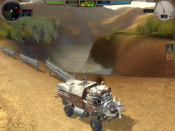 Передвижение по миру осуществляется только своим ходом — никаких телепортаций и прочей магии. На глобальной карте отображаются маркеры заданий, плюс можно поставить один (почему только один?) собственный маркер. Соответственно, на радаре мы имеем счастье наблюдать стрелочки и расстояние до маркера. Вполне удобно. Машина управляется классической комбинацией WASD, прицеливание мышкой, стрельба кнопками мыши (на каждую из кнопок можно назначить группу оружия) либо пробелом — из всех стволов сразу. Раскладка «по умолчанию» не совсем идеальна, благо все клавиши можно переназначать. Бои с противниками происходят следующим образом: стараемся не останавливаться и прицеливаться на ходу (учитывая свойства оружия, ибо далеко не все бортовые орудия способны поворачиваться на 360 градусов). Разделение оружия на группы крайне удобно, так как времени на перезарядку, порой, требуется изрядно и, пока перезаряжается первая группа, — стреляем из второй, и наоборот.
